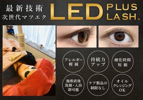 専用の接着剤と専用のLEDライトで光を照射し硬化することにより、今までにない持続力と美しい仕上がりを維持できる最新技術。